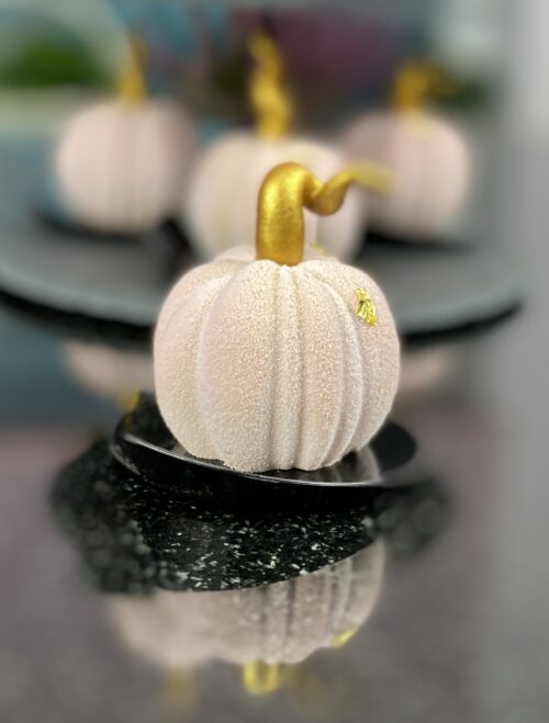 MONOPORCJE DYNIE w zamszu czekoladowym – Ciasto dyniowe z przyprawami i orzechami – Nadzienie marakuja – Mus na bazie karmelowej…