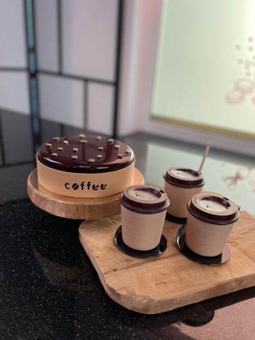 Tort musowy i monoporcje w kształcie kubków Cappuccino Złożenie tortu i mono porcji bez specjalnych form silikonowych Temperowanie czekolady/dekoracje czekoladowe Biszkopt…